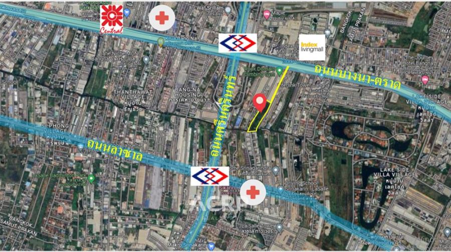 - รายล้อมด้วยศูนย์การค้าและอาคารสำนักงาน เช่น เซ็นทรัลบางนา, ไบเทคบางนา, เมกาบางนา