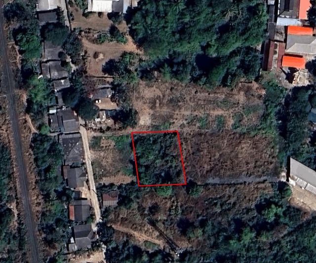 ที่ดินสี่เหลี่ยมผืนผ้า (ขนาดโดยประมาณ) หน้ากว้าง 27 ม. x ลึก 31 ม. ติดทางสาธารณประโยชน์และด้านข้างอีกฝั่งมีถนนคอนกรีตตัดผ่าน