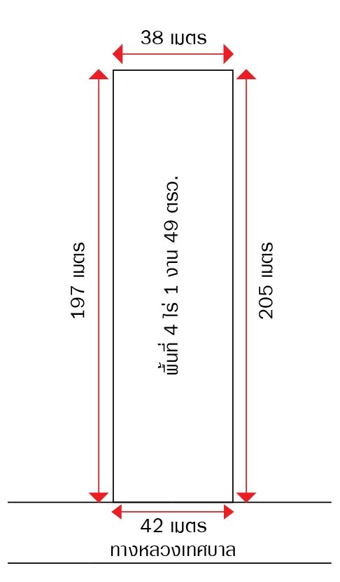 หน้ากว้างแปลงที่ดิน ติดถนนสาธารณะ ประมาณ 40 เมตร ลึกประมาณ 200 เมตร