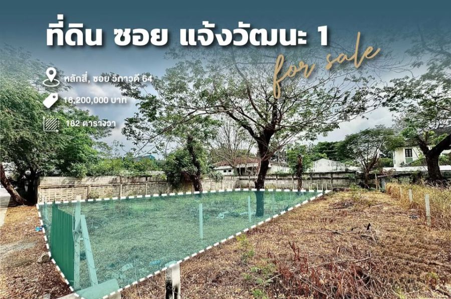 ขายที่ดิน ซอยแจ้งวัฒนะ 1 ใกล้ BTS หลักสี่ 182 ตร.ว. เหมาะสร้างบ้าน