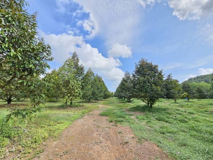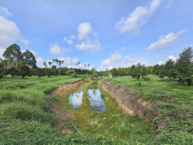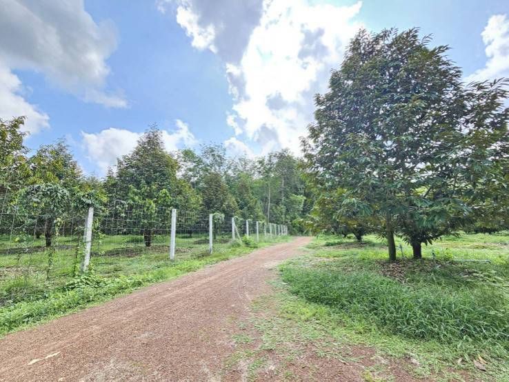 รายละเอียดที่ดิน : เนื้อที่ทั้งหมด 38 ไร่ แบ่งเป็นสวนทุเรียน 22 ไร่ สวนยาง 16 ไร่ ที่ดินอยู่ห่างจากถนนสุขุมวิทเพียง 3 กิโล ติดถนนสาธารณะ 2 ด้าน