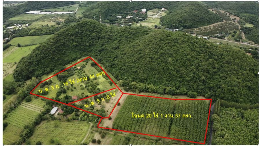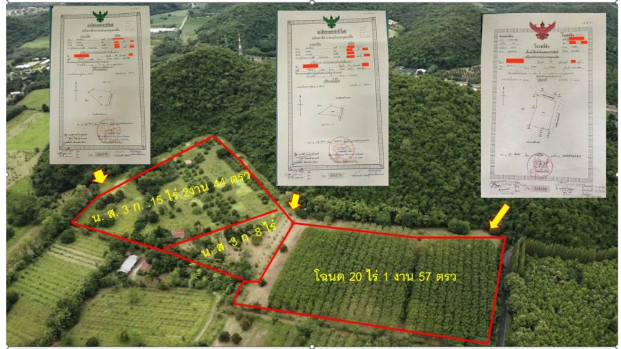 เป็นโฉนด20 ไร่ และนส3 ก 24 ไร่ (2แปลง) ติดกัน