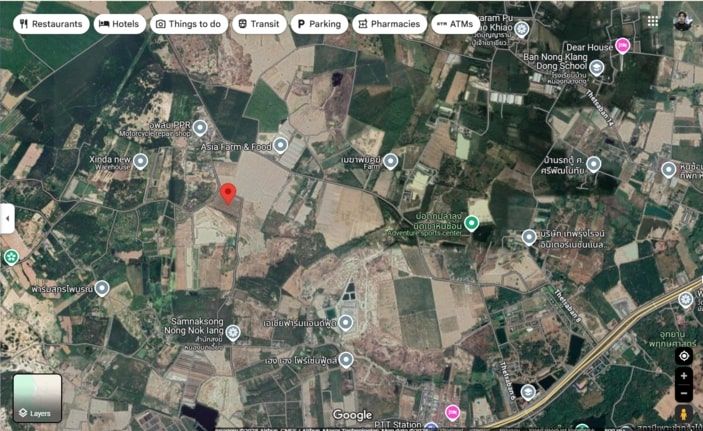 The land has a frontage of about 156 meters, adjacent to Ban Nong Krapho Road, which is approximately 8 meters wide and branches off from Highway 304.