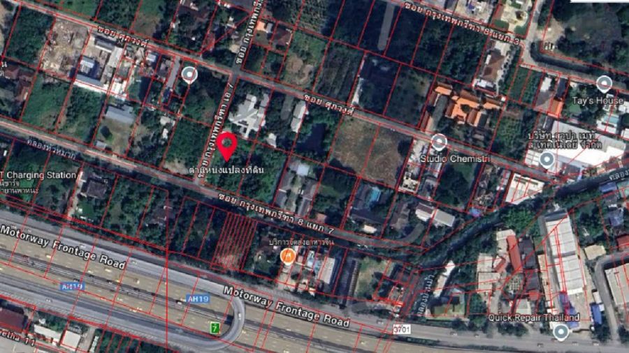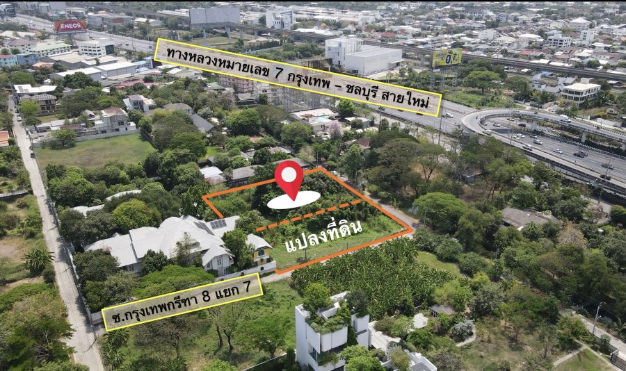 ขายที่ดินเปล่าแปลงสวยสี่เหลี่ยมผืนผ้า แปลงมุมติดถนน 2 ด้าน ซ.กรุงเทพกรีฑา 8 แยก 7 ขนาด 2 ไร่ ( แบ่งขายแปลงละ 1 ไร่) หน้ากว้าง 50 เมตร ลึก 64 เมตร เหมาะสำหรับสร้างบ้านพักอาศัย หรือสำนักงาน ผังสีเหลือง ย.3-42
