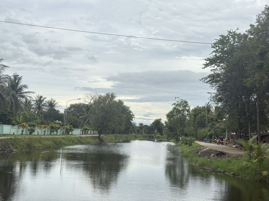ที่ดินติดถนนลาดยาง ติดคลองส่งน้ำ ราคาถูกด้านหลังวิวภูเขา สลับต้นตาล