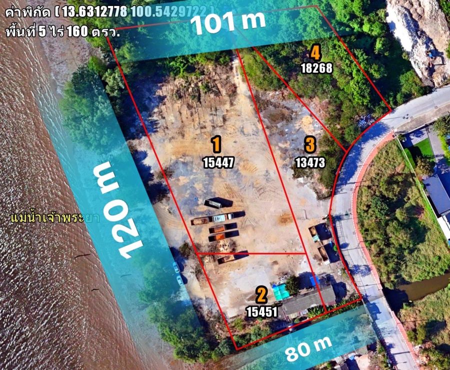ขายที่ดิน ทำเลทองติดแม่น้ำเจ้าพระยา ได้วิวสะพานกาญจนาภิเษก (เนื้อที่ 5 ไร่ 160 ตรว.) อำเภอ พระประแดง จังหวัด สมุทรปราการ