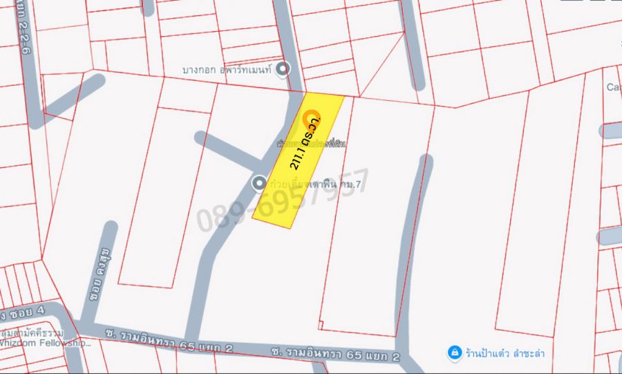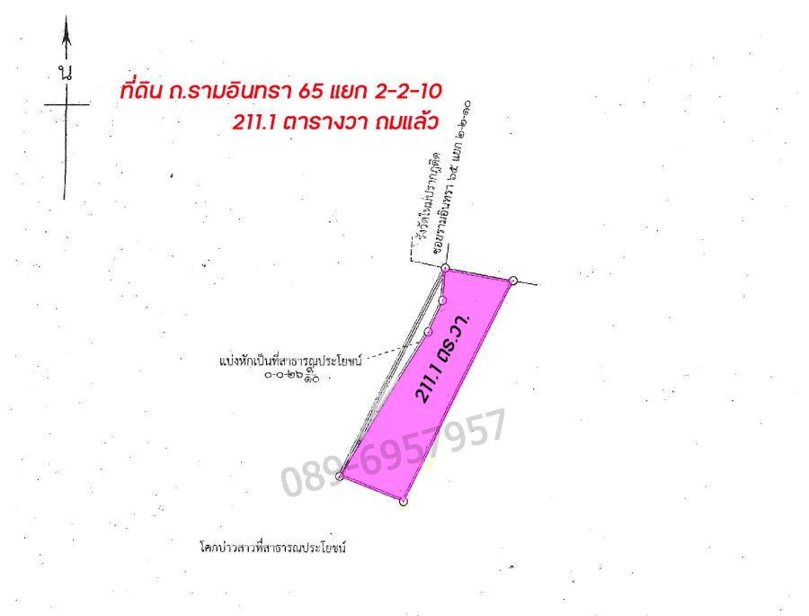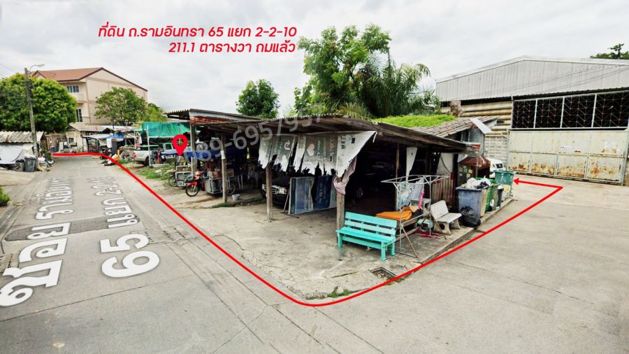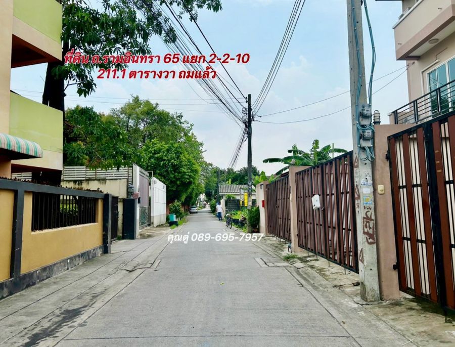 ขายที่ดิน รามอินทรา 65 แยก 2-2-10 แปลงมุม ถมแล้ว 211.1 ตรว. ใกล้รถไฟฟ้าสีชมพู-สถานีรามอินทรา กม.6
