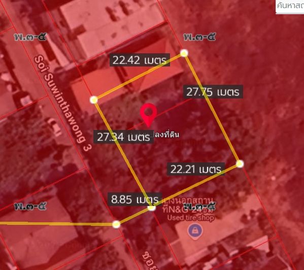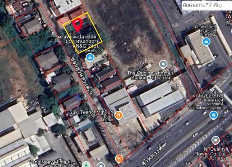 ขายที่ดินแปลงสวย ขนาด 162 ตารางวา หน้ากว้างประมาณ 21 เมตร ลึก 27 เมตร ถนนซอยกว้าง 8 เมตร อยู่ในพื้นที่สีแดง พ.3 ทำเลดีมาก หากจากถนนสุวินทวงศ์เพียง 100 เมตร ปากซอยมีร้าน สุกี้ตี๋น้อย ด้านหลัง อยู่ใกล้กับบิ๊กซีสุวินทวงศ์ เพียง 200 เมตร เท่านั้น ใกล้ตลาดมีนบุรี ใกล้ถนนรามอินทรา