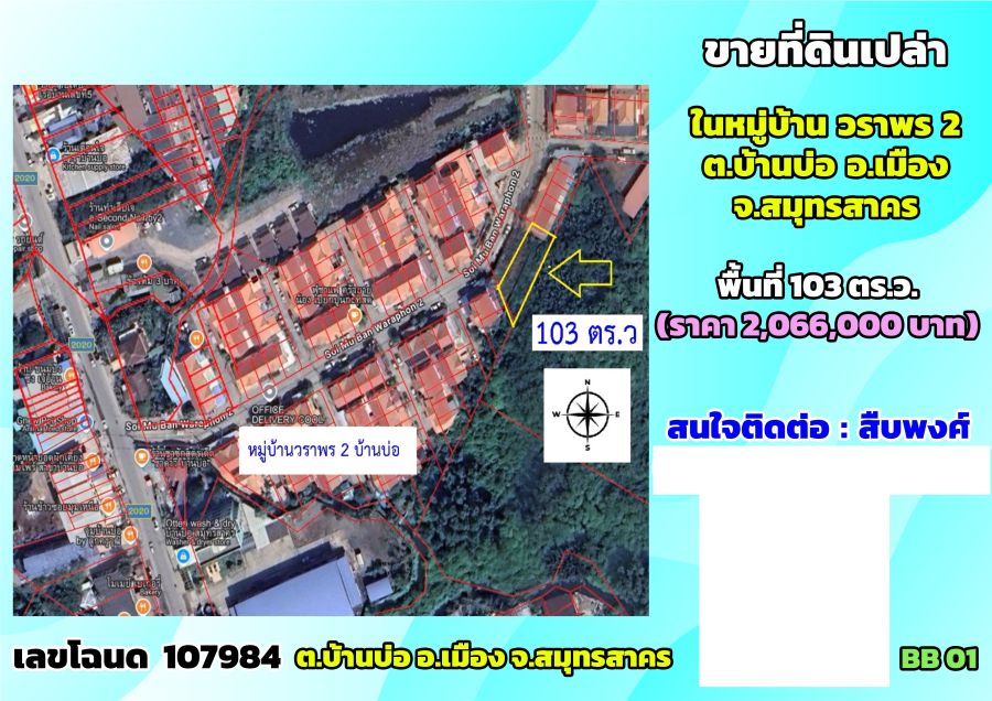 ขายที่ดินเปล่า ในหมู่บ้านวราพร2 ต.บ้านบ่อ จ.สมุทรสาคร
