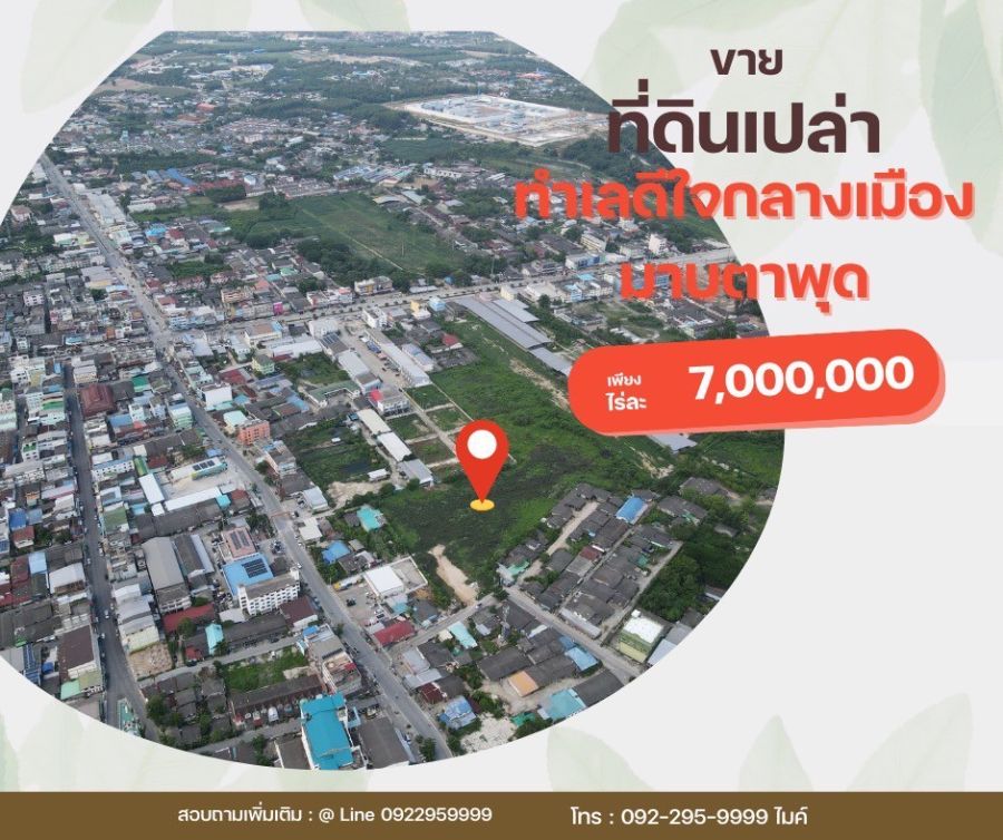 ขายที่ดินเปล่าทำเลดีใจกลางเมืองมาบตาพุด หลังเซเว่น 6-3-85.59 ไร่ เมืองระยอง