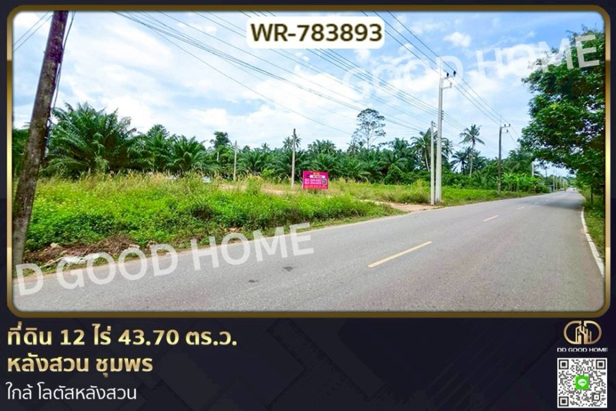 ที่ดิน 12 ไร่ 43.70 ตร.ว. หลังสวน ชุมพร ใกล้ โลตัสหลังสวน