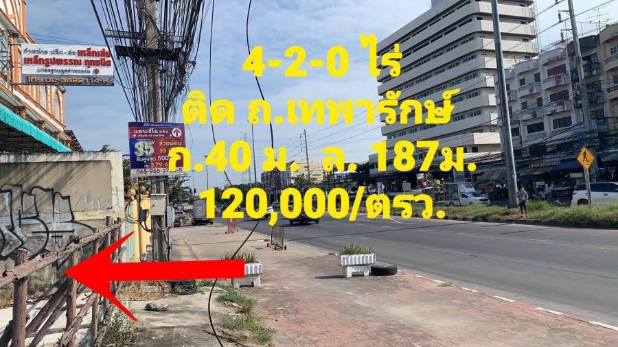 ขายที่ดิน ติดถนนเทพารักษ์ กม4.5 จังหวัดสมุทรปราการ