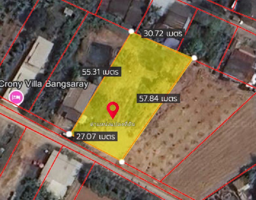 หน้ากว้างติดถนนคอนกรีต 27 เมตร X ยาว 57 เมตร