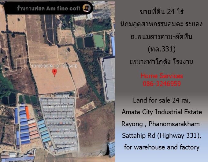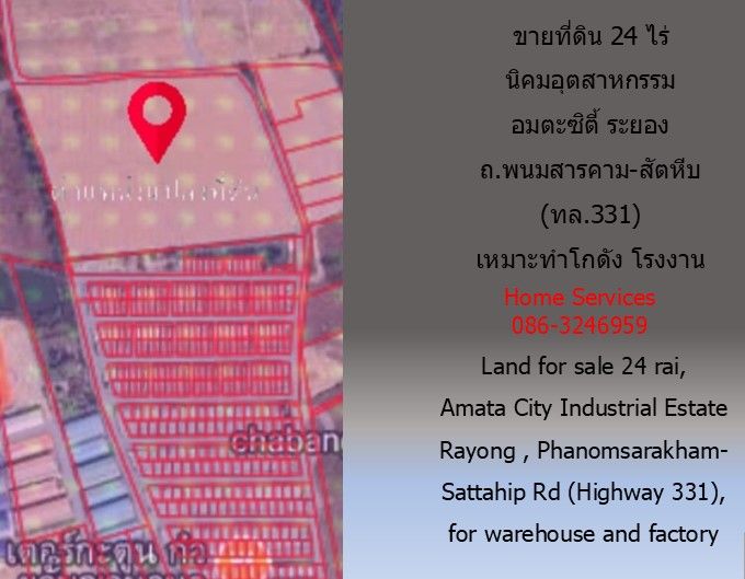 ขายที่ดิน นิคมอุตสาหกรรมอมตะ ระยอง 24 ไร่ 82 วา ถ.พนมสารคาม-สัตหีบ (ทล.331) เหมาะทำโกดัง โรงงาน