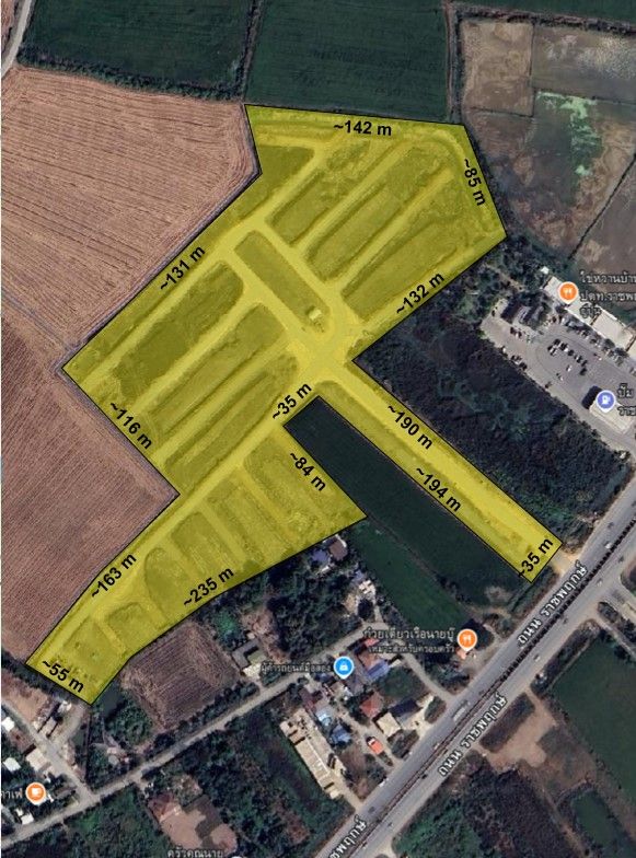 ขนาดเนื้อที่ : 40 ไร่ 27.5 ตารางวา (16,027.5 ตารางวา)