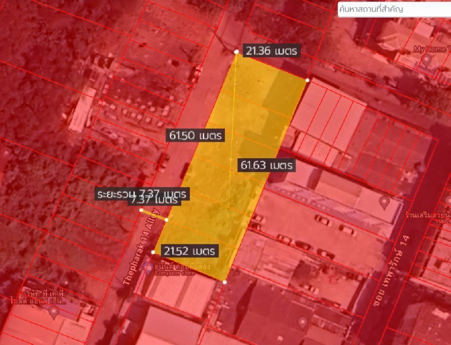 ขนาดที่ดิน 329 ตร.วา หน้ากว้าง 22 ม. ลึก 60 ม.