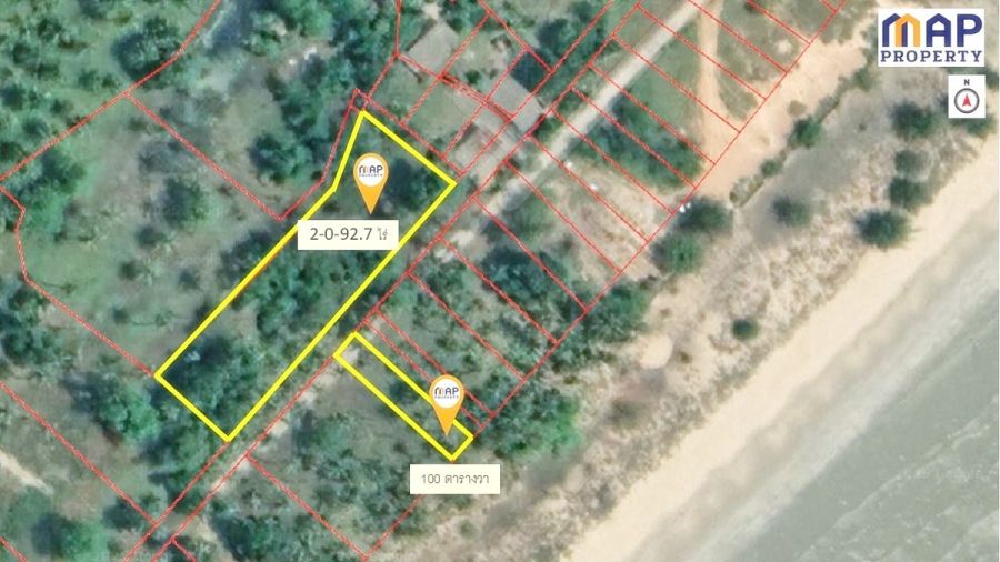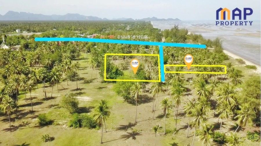 ขายที่ดิน 2 แปลง เนื้อที่รวม 2 ไร่ 1 งาน 92.7 ตารางวา. ด้านหน้าติดทะเล มีถนนคอนกรีตเป็นทางสาธารณะติดทั้ง 2 แปลง