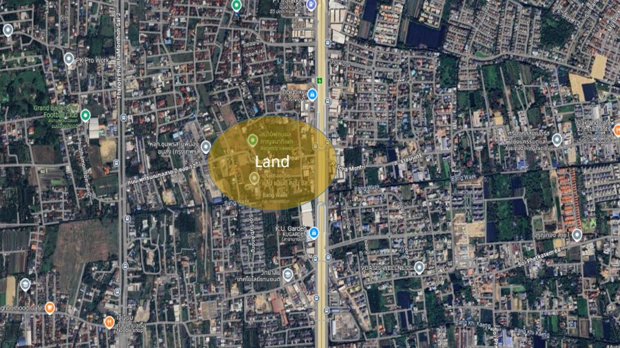 ที่ดินแปลงนี้อยู่ในแหล่งชุมชน ผู้คนสัญจรเดินทางผ่านค่อนข้างเยอะ