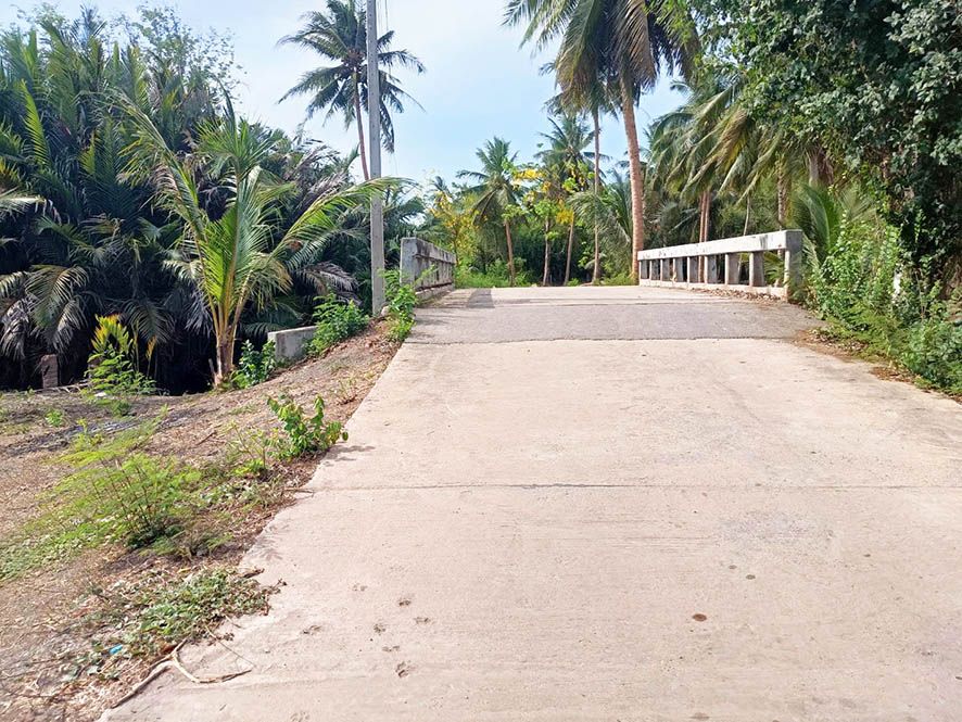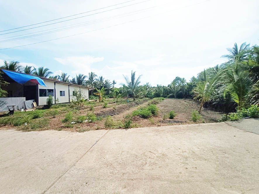 ที่ดินเปล่า 524.5 วา ด้านหน้าติดถนนคอนกรีต ด้านข้างและหลังติดคลองสวนดอกไม้ บริเวณรอบเป็นสวนมะพร้าว ห่างจากตัวเมืองเพียง 3 กม. ขายแปลงละ 3.5 ล้าน
