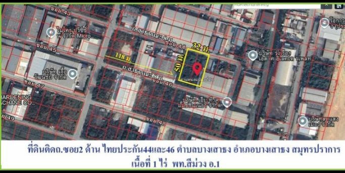 🟣 ขายถูกต่ำกว่าตลาด ที่ดินเปล่า ผังสีม่วง ซอยไทยประกัน 44-46 ติดถนน 2 ด้าน เทพารักษ์ กม.20 บางเสาธง สมุทรปราการ