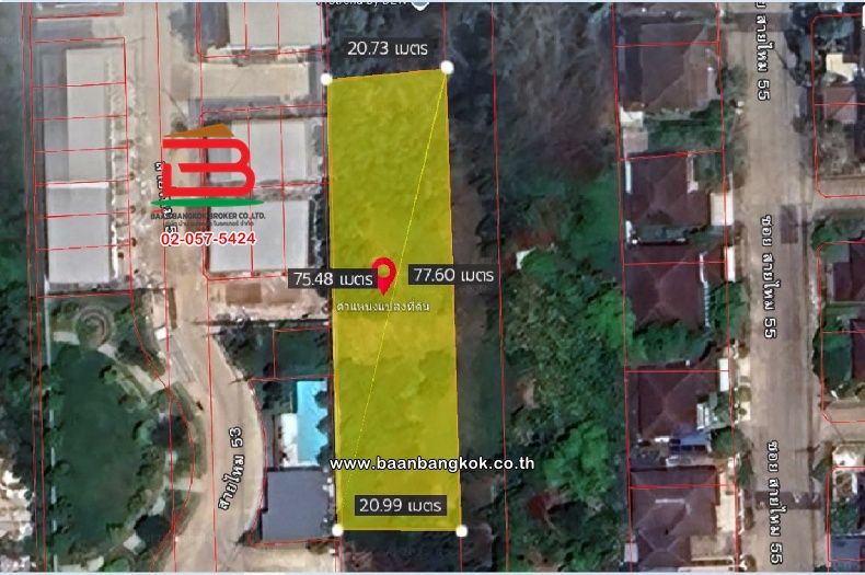 ประเภททรัพย์สิน : ที่ดินแปลงสวย หน้ากว้าง 77X21 เมตร ถนนหน้าแปลงกว้าง 8 เมตร เป็นพื้นที่สีส้ม ระยะจากปากซอยถึงแปลงห่าง ประมาณ 400 เมตร หน้าแปลงหันหน้าทิศตะวันออก ด้านหลังแปลงติดกับโครงการหมู่บ้าน เหมาะสำหรับ สร้างที่อยู่อาศัย, ออฟฟิศ/สำนักงาน, โกดัง/คลังสินค้า