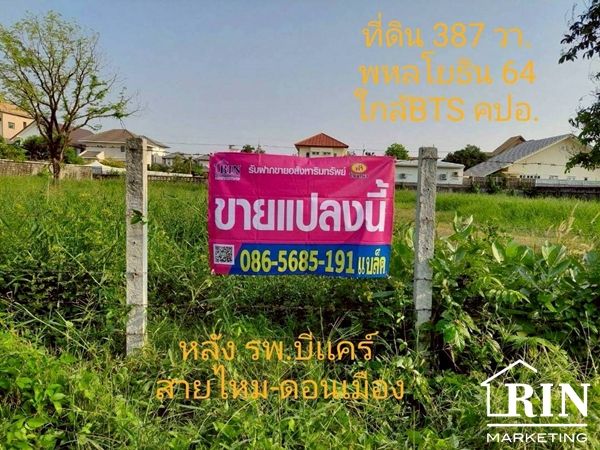 แปลงอยู่หลัง รพ.บีเเคร์ ใกล้รถไฟฟ่า BTS คปอ. ใกล้สนามบินดอนเมือง ใกล้ถนนพหลโยธิน เเค่ 500 เมตร