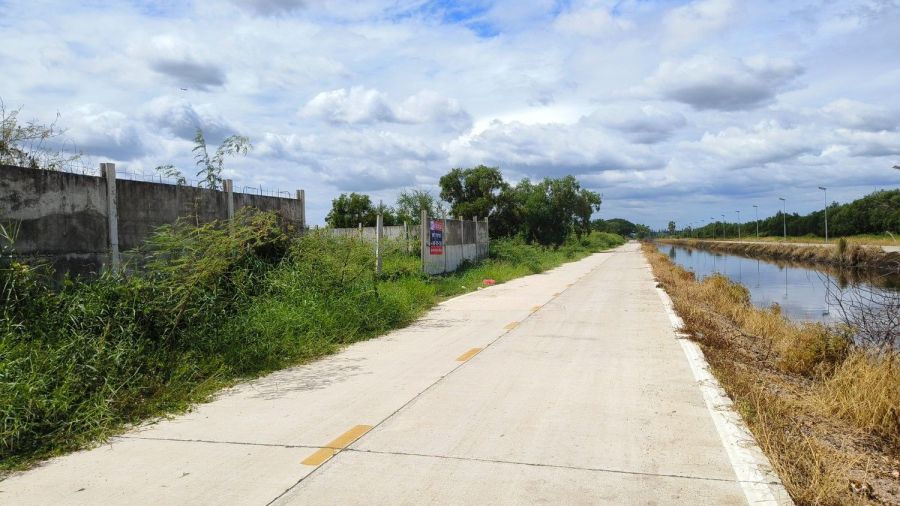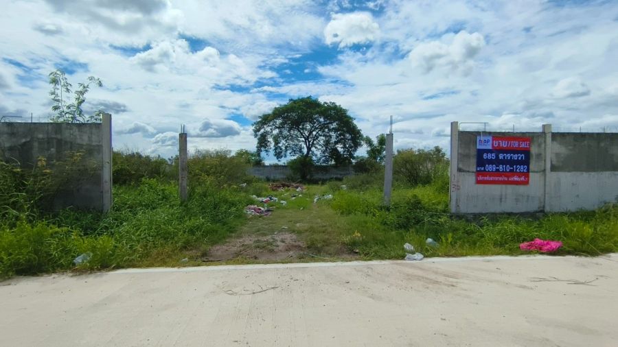 - ที่ดินแปลงสวย ถมแล้ว มีรั้วรอบด้านทรงสี่เหลี่ยมผืนผ้าขนาด 78 × 35 ม.