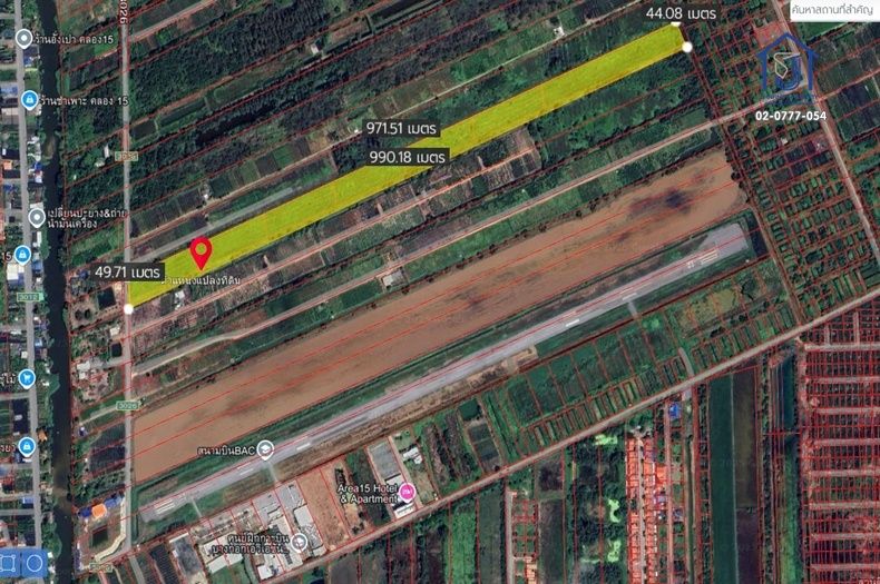 รีวิว : ใกล้สนามบิน BAC (Bangkok Aviation Center) เหมาะทำคลังสินค้าหรือกิจการเกี่ยวกับการบิน กว้าง 50 ม. ลึก 990 ม. เห็นวิวแนวยาวของคลอง 15,คลังสินค้า–โลจิสติกส์: เชื่อมรังสิต–นครนายก ใกล้มอเตอร์เวย์ วิ่งรถบายพาสได้สบาย