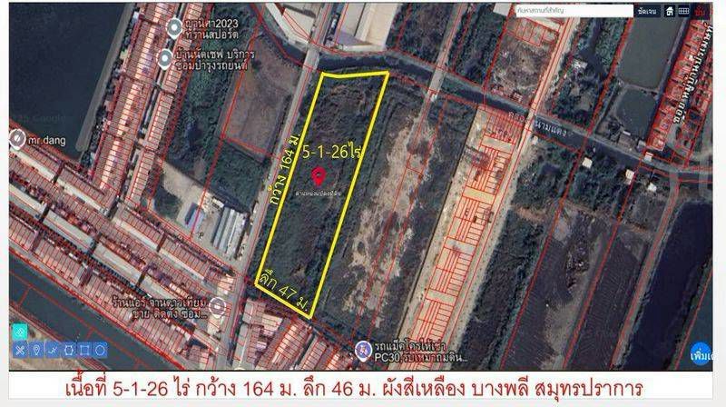 เหมาะสร้างโกดัง คลังสินค้า สำนักงาน ผังสีเหลือง เนื้อที่ 5-1-26 ไร่ ไร่ละ 7.5 ล้าน บางพลี สมุทรปราการ