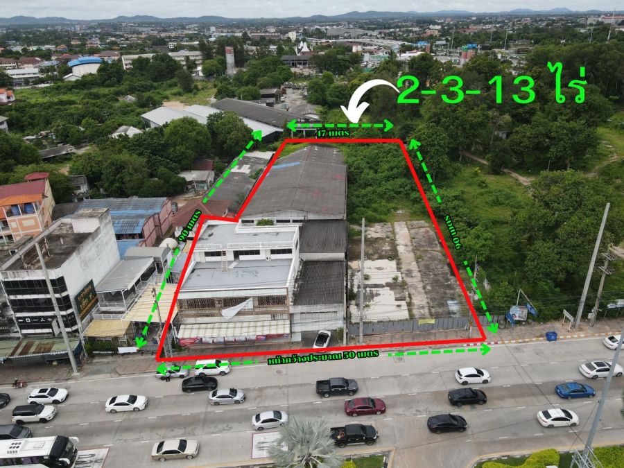 ขายที่ดินพร้อมสิ่งปลูกสร้าง อาคาร/โกดัง พื้นที่รวม 2-3-13 ไร่ ติดถนนสุขุมวิท พัทยาเหนือ