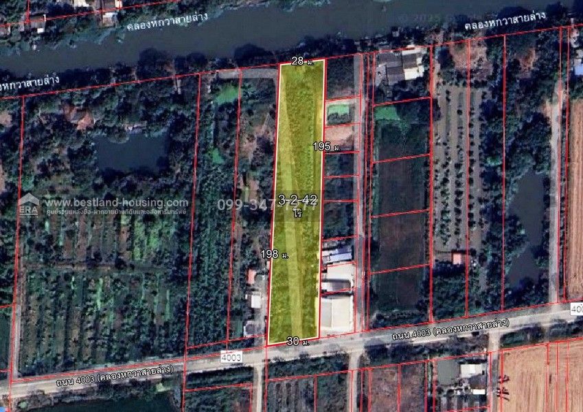 รายละเอียด: ที่ดินเปล่า ยังไม่ถม ขนาด 3-2-42 ไร่ ต.ลำไทร อ.ลำลูกกา จ.ปทุมธานี ผังเมืองสีเขียว