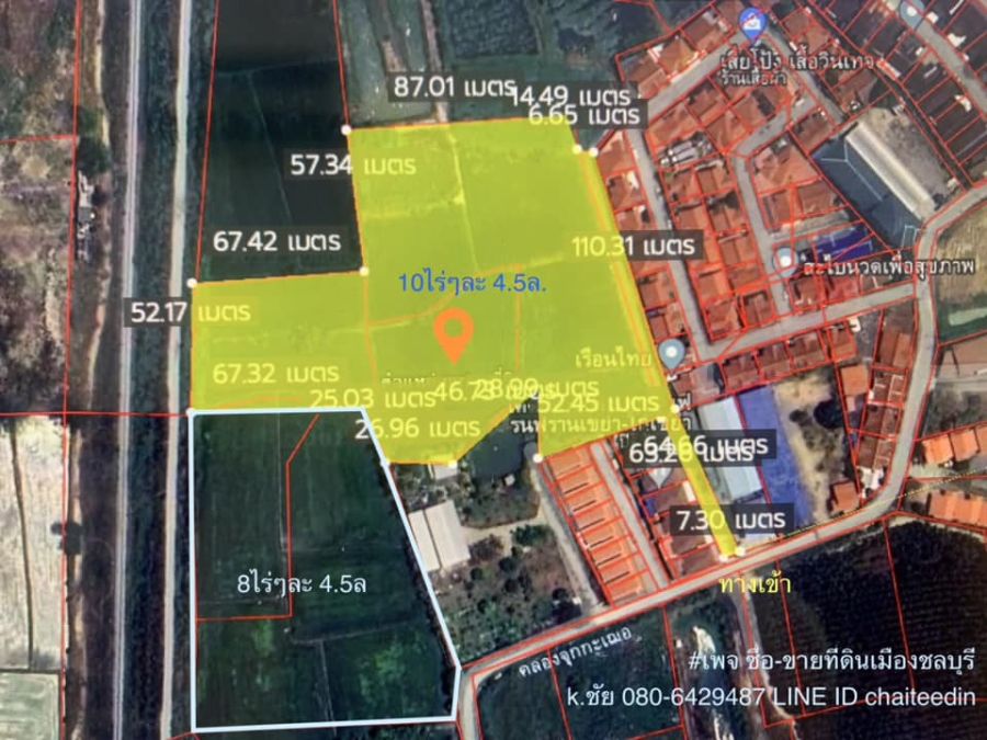 ขายที่ดิน 10ไร่ ทุ่งกราด แหลมฉบัง บางละมุง ผังม่วงลาย ใกล้ ทล.3009 ห่างท่าเรือ 4กม.เหมาะพัฒนาเป็นที่พักอาศัย หรือโกดัง/โรงงาน ห่างเครือสหพัฒน์ 3กม. ไร่ละ 4.5 ล้าน สนใจสอบถามรายละเอียด ติดต่อคุณชัย