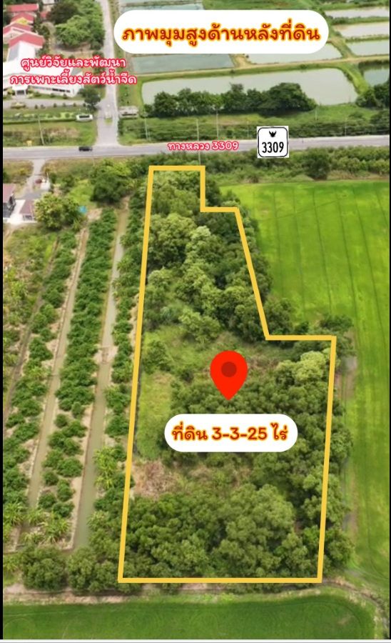 Land for sale, 3-3-25 rai (1,525 sq.wah), next to Highway 3309.