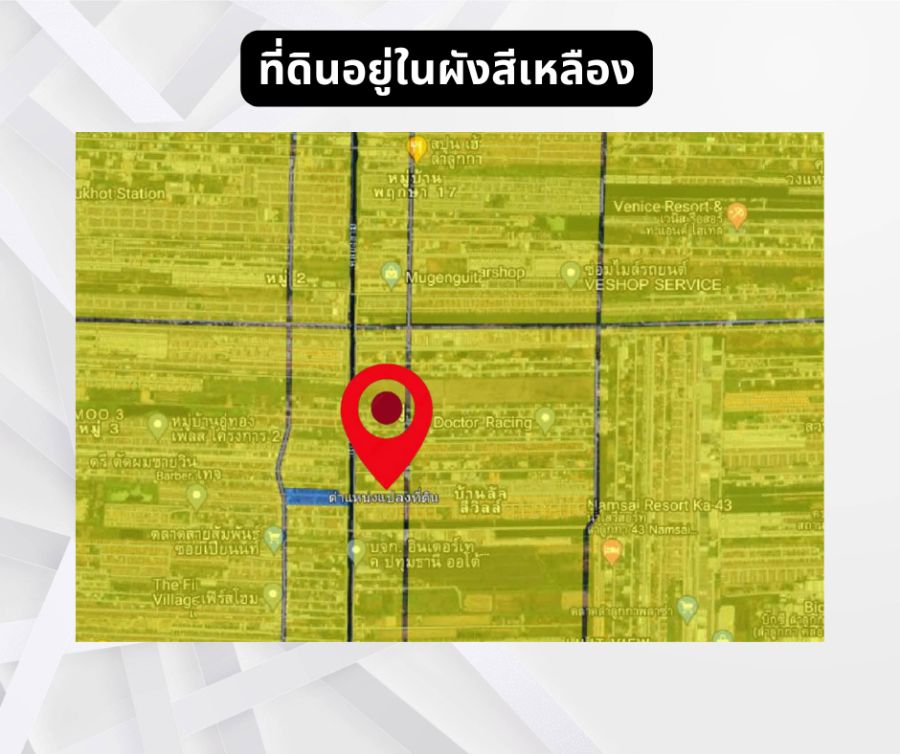 อยู่ในเขตผังเมืองสีเหลือง (ที่อยู่อาศัยหนาแน่นน้อย) - เหมาะกับบ้านเดี่ยว, บ้านแฝด หรือทาวน์โฮม
