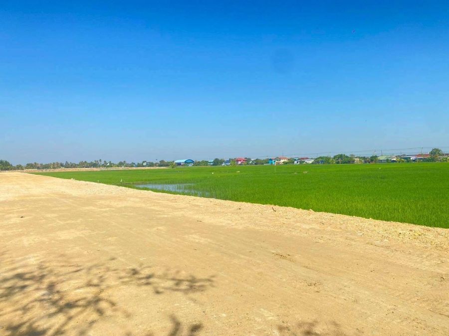 หน้ากว้างติดถนน 429 เมตรม ลึก 520 เมตร ด้านหน้าที่ดินถนนคอนกรีตกว้าง 16เมตร