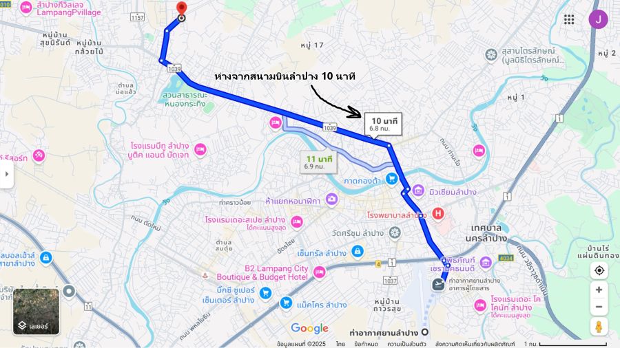 ภาพ3 แสดงระยะทางและการเดินทาง ห่างจากสนามบินลำปาง 10 นาที