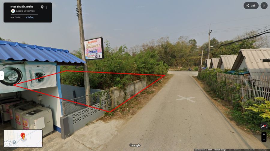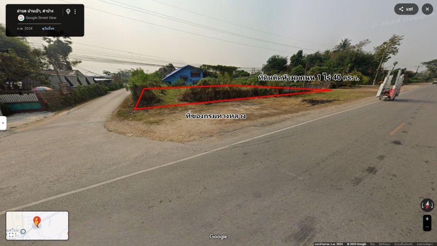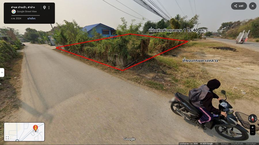 ภาพ6 กับ ภาพ7 ภาพมุมมอง Street View ติดหัวมุม ข้างหน้ามันโล่งๆ เป็นที่ของกรมทางหลวง และมีหลายบ้านสร้างสิ่งก่อสร้างออกมาตรงนี้ (สร้างบ้านเป็นหลังรุกล้ำเป็นปีๆ มายังมีเลย เยอะด้วย)