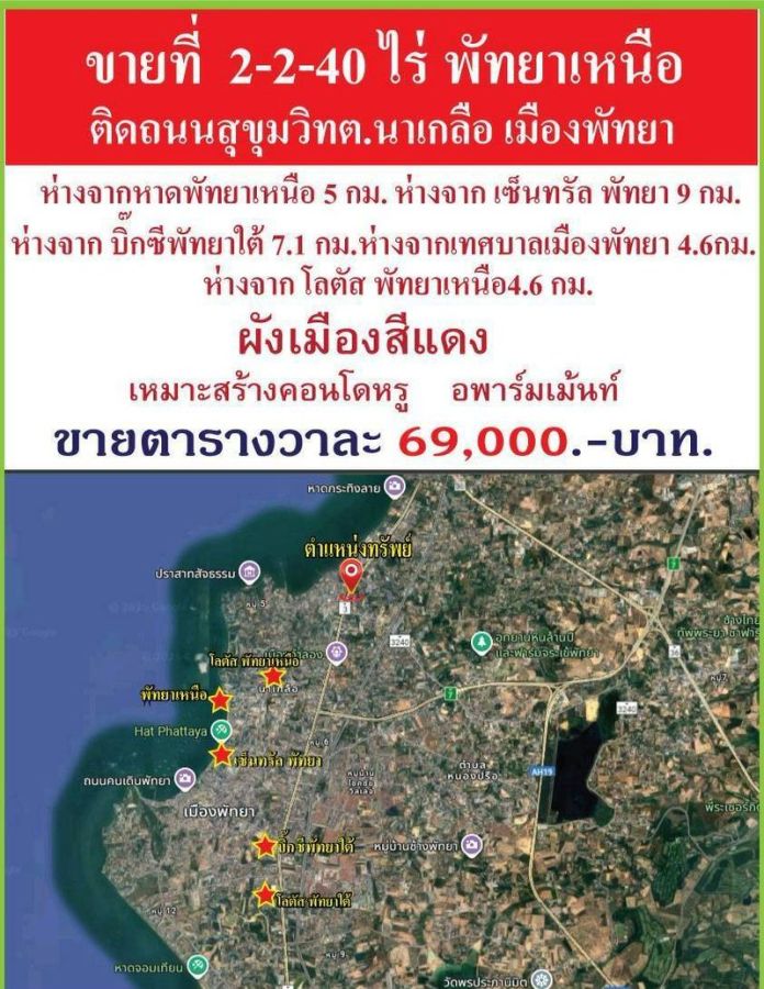 🔴 ขายด่วนขายถูก ที่ดินติดถนนสุขุมวิท พร้อมอาคารพาณิชย์ 3 ชั้น 3 คูหา พัทยาเหนือ ต.นาเกลือ อ.บางละมุง จ.ชลบุรี