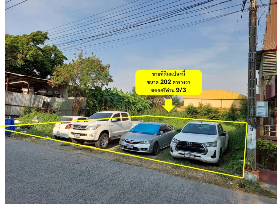 #ขายที่ดิน ซอยศรีด่าน 9/3 สำโรงเหนือ สมุทรปราการ เนื้อที่ 202 ตร.ว ทำเลดี ใกล้ถนนศรีนครินทร์เพียง 320 เมตร และใกล้รถไฟฟ้าสถานีศรีแบริ่ง เหมาะกับการสร้าง Home Office คลังสินค้า หรือหอพัก อพาร์ทเม้นท์ เดินทางสะดวก อยู่ในแหล่งชุมชน