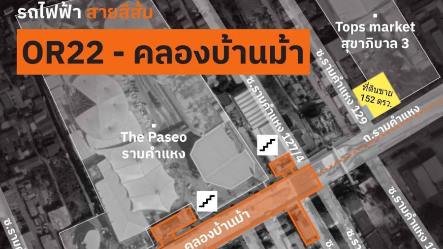 ขายที่ดินมีสิ่งปลูกสร้าง 152 ตรว. ติดถนนรามคำแหง ใกล้รถไฟฟ้าสายสีส้ม สถานีคลองบ้านม้า แขวงสะพานสูง สะพานสูง กรุงเทพๆ