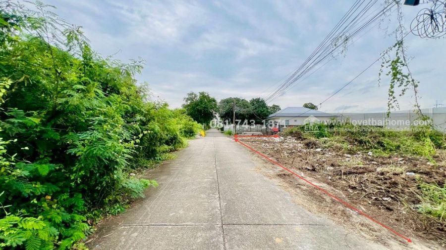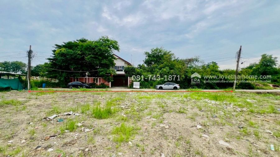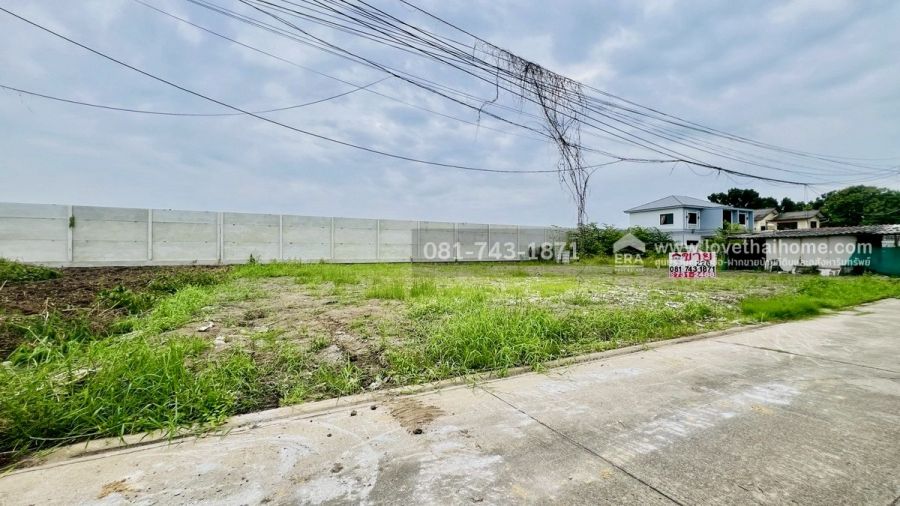 - ด้านหลังแปลง ติดรั้วหมู่บ้านลัดดารมย์ ไม่เปลี่ยว มีบ้านพักอาศัยและโกดังสินค้า
