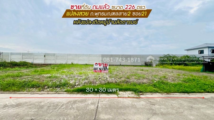 ขายที่ดินถมแล้ว ถนนพุทธมณฑลสาย2 ซอย21 หลังแปลงติดหมู่บ้านลัดดารมย์ พุทธมณฑลสาย2 ขนาด 226 ตรว. แปลงสวย วาละ 27,000 บาท แบ่งขายได้