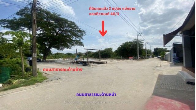 ขายที่ดินถมแล้ว 199 ตารางวา แบ่งขายมี 2 แปลง ๆ ละ 199 ตารางวา รวมทั้งหมด 398 ตารางวา ถนนซอยติวานนท์ 46/3 กว้าง 6 เมตร ที่ดินอยู่ใกล้รถไฟฟ้าสายสีชมพู สถานีสามัคคี กับ สถานีสนามบินน้ำ และใกล้ศูนย์ราชการจังหวัดนนทบุรี ซึ่งเป็นย่านธุรกิจ สาธารณูปโภค ไฟฟ้า น้ำประปา พร้อม ต.ท่าทราย อ.เมือง จ.นนทบุรี