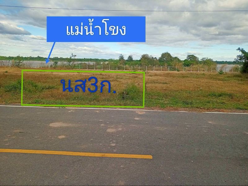 📐 หน้าแปลงที่ดินกว้าง 22 ม. ติดถนนลาดยาง/ ติดถนนทางเดินชมวิวเลียบโขง / ติดแม่น้ำโขง