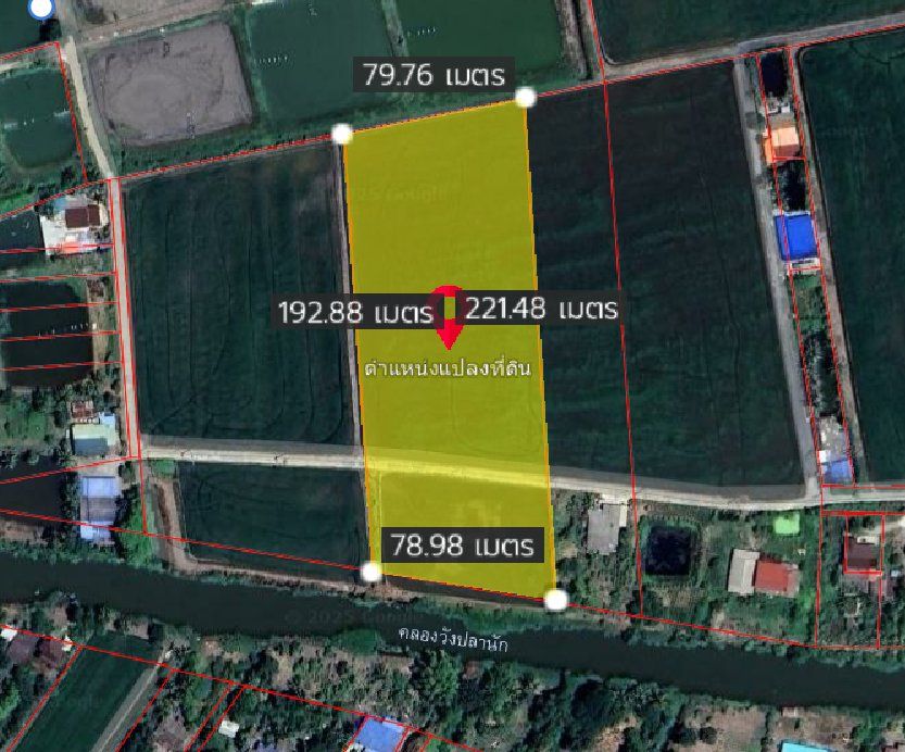 หน้ากว้างติดคลอง 80 เมตร X ยาว 221 เมตร