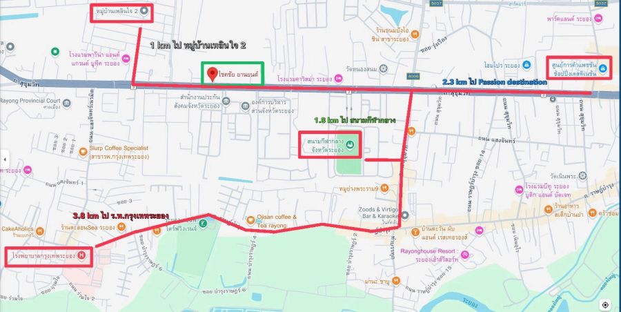• ห่างจาก โรงพยาบาลกรุงเทพระยอง 4 กม.