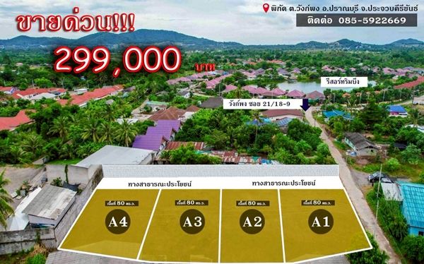 ขายด่วน!!! ที่ดินแหล่งชุมชน ต.วังก์พง อ.ปราณบุรี จ.ประจวบคีรีขันธ์ เริ่มต้นเพียง 299,000 บาท / แปลง โฉนดครุฑแดง มีน้ำมีไฟ มีเพื่อนบ้าน