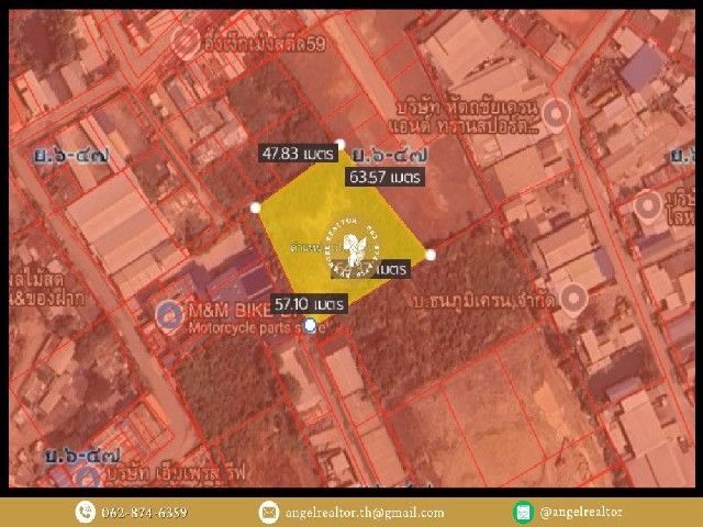 - แปลงที่ดิน หน้ากว้าง 57 ม. ความลึก 64 ม. โดยประมาณ