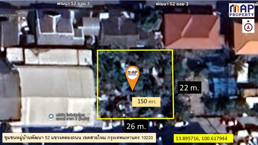 ขาย ที่ดินเปล่า ปลูกต้นไม้ ถมดินแล้ว 150 ตรว. รูปสี่เหลี่ยมสวยกว้าง 26 ม.ลึก 22 ม.