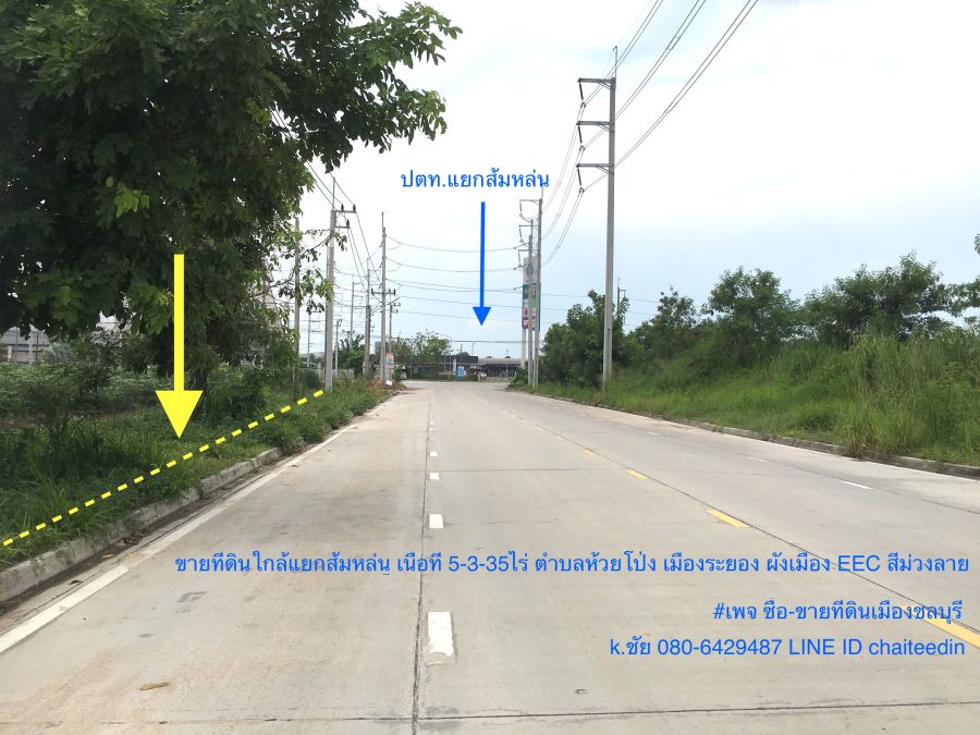 ขายที่ดินเนื้อที่ 5.5ไร่ใกล้ปั้ม ปตท.แยกส้มหล่น ผังเมือง EEC สีม่วงลาย ต.ห้วยโป่ง อ.เมืองระยอง ใกล้นิคมเอเชีย,นิคมมาบตาพุด ห่างจากถนนบินอู่ตะเภา(เมืองการบิน) 12กม.โลบินสันบ้านฉาง 3กม. ราคาไร่ละ 5 ล้าน สนใจติดต่อคุณชัย 📞080-6429487 LINE ID chaiteedin เพจ ซื้อ-ขายที่ดินเมืองชลบุรี